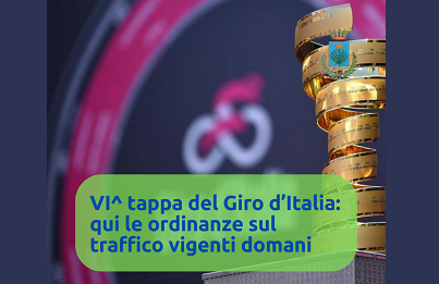 ? Si informa la cittadinanza che per la giornata di domani 11 Maggio 2023 dalle ore 12,00 è stato istituito il divieto di transito nei vicini Comuni di Amalfi, Ravello e Tramonti per consentire lo svolgimento della VI^ tappa della 106° Edizione del Giro d'Italia.