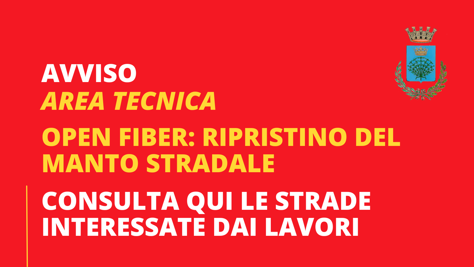 Come richiesto dall'Ufficio Tecnico Comunale, l'impresa Open Fiber procederà al ripristino del manto stradale da domani 25/07/2023 al 28/07/2023.