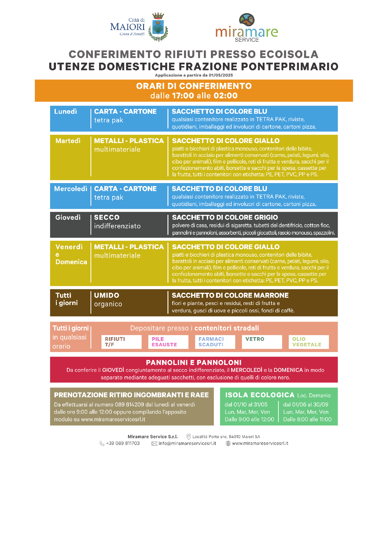 Il Comune di Maiori vara a Ponteprimario un nuovo sistema sperimentale di raccolta dei rifiuti. Punto saliente: il conferimento presso l’eco-isola di prossimità di via Nuova Chiunzi 186, operativa dal 20 ottobre 2025, per migliorare l’efficienza del servizio e ridurre i costi complessivi della raccolta.