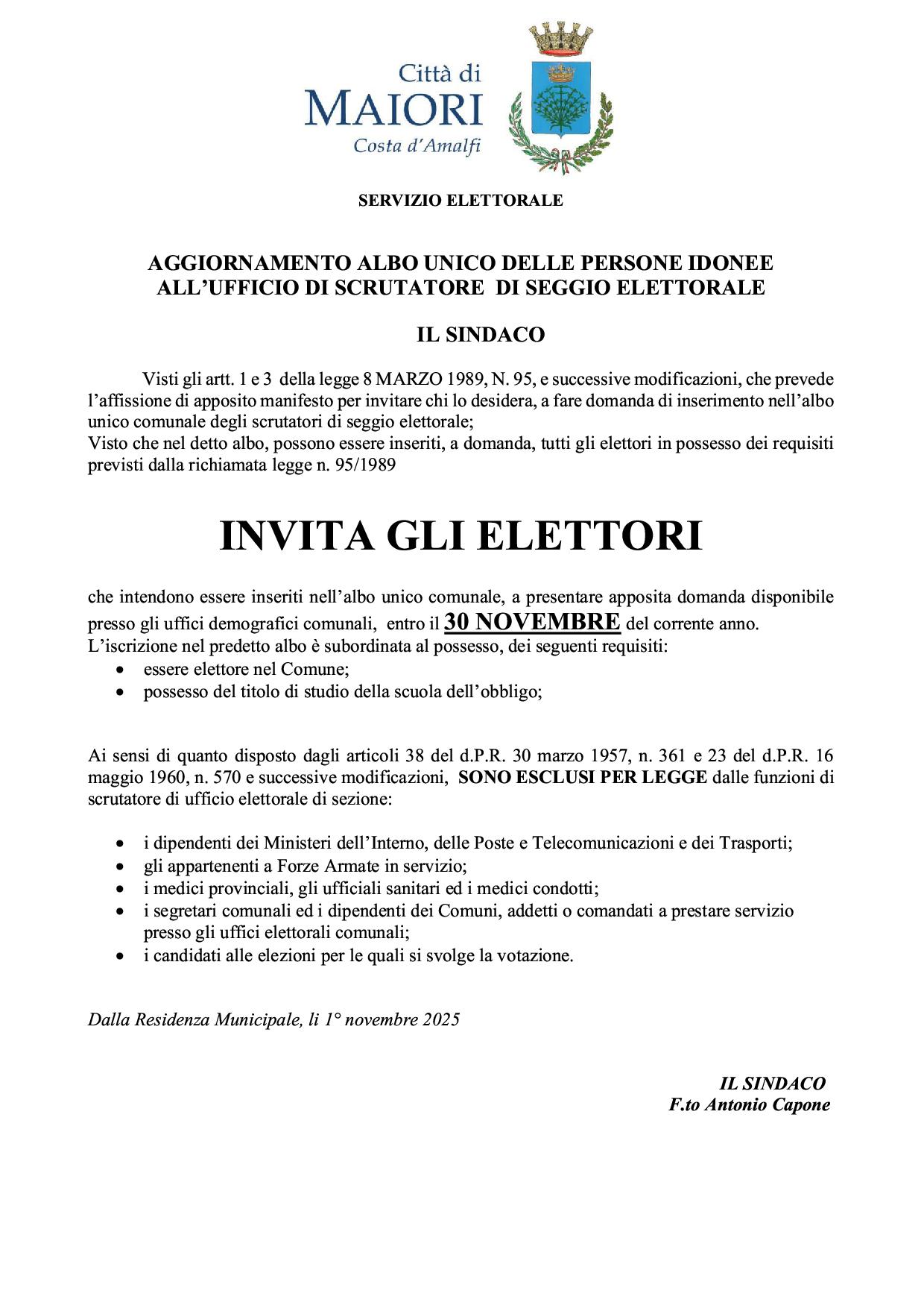 A cura di Area Amministrativa e dei Servizi alla Persona Corso Reginna 71, Maiori(SA), 84010 Telefono: +39 089814201Email: r.sammarco@comune.maiori.sa.it