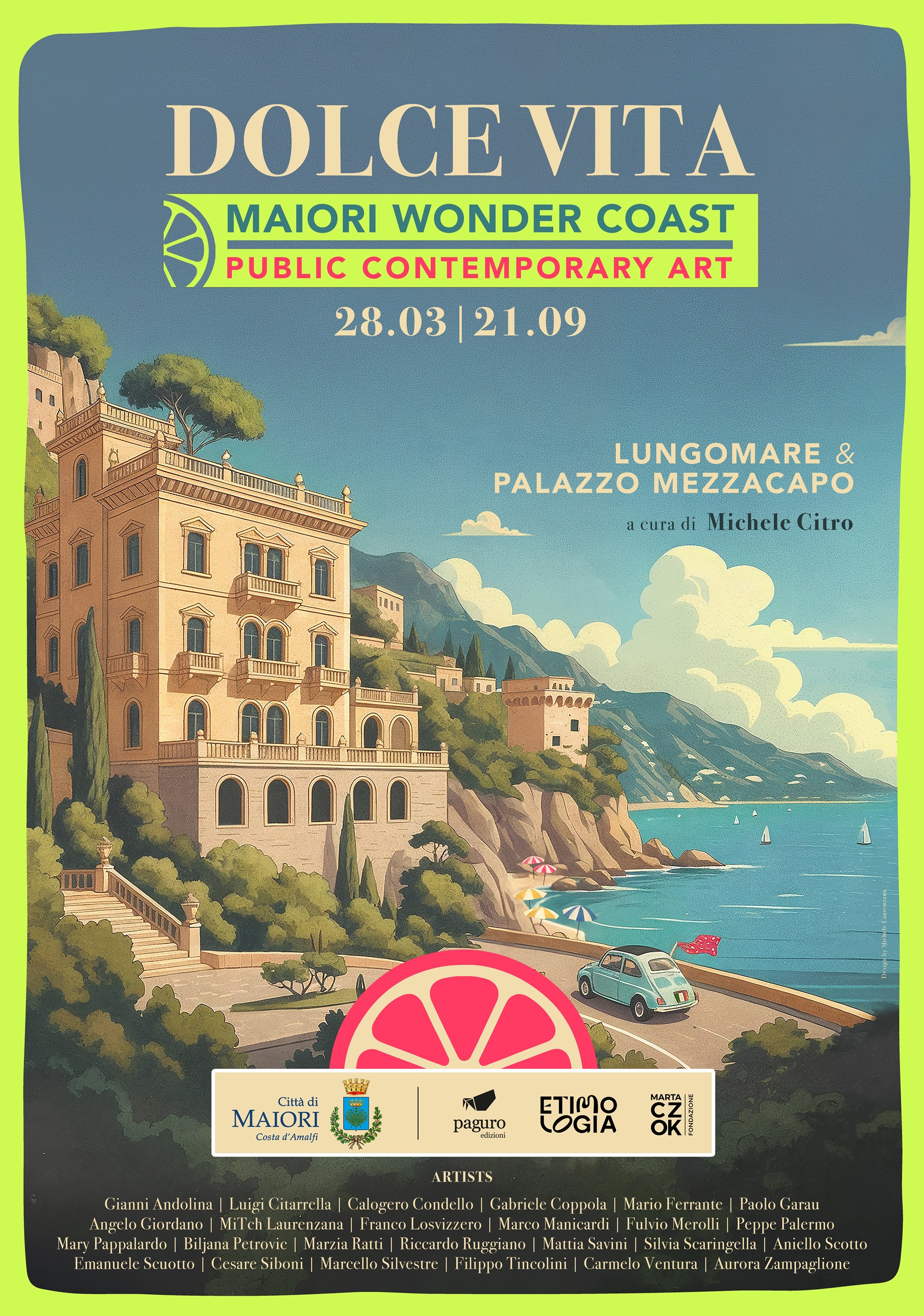 La meraviglia ridefinisce Maiori, grazie alle nuove mostre d’arte che prenderanno il via a Maiori da sabato 28 marzo 2026 con il vernissage alle ore 16.00. In quel giorno saranno inaugurate le grandi rassegne “Dolce Vita. Maiori Wonder Coast” e “Maiori Wonder Palace”, che trasformeranno il lungomare e palazzo Mezzacapo in un percorso espositivo che si protrarrà fino a metà settembre. Un progetto artistico di ampio respiro curato da Michele Citro con il patrocinio del Comune di Maiori, che ridefinisce il tessuto urbano e monumentale attraverso, appunto, la lente della meraviglia. Come già accaduto la scorsa estate grazie alla volontà dell’amministrazione guidata dal sindaco Antonio Capone di fare di Maiori un hub artistico di riferimento, lo storico palazzo Mezzacapo di corso Reginna e l’intero lungomare diventano spazi che dialogano tra loro sul fil rouge dell’espressione artistica. Un continuum tra le stanze del palazzo nobiliare, sempre più incardinato come polo artistico, e i luoghi aperti dove la gente vive la quotidianità, che diventano palcoscenico dell’espressione artistica.