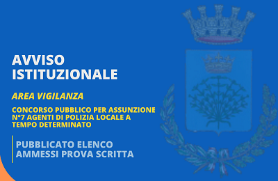 CONCORSO PUBBLICO PER ESAMI PER L'ASSUNZIONE DI N.07 UNITA' A TEMPO DETERMINATO PART-TIME FULL-TIME NEL PROFILO PROFESSIONALE DI AGENTE DI POLIZIA LOCALE CATEGORIA C POSIZIONE ECONOMICA C1 COMPARTO REGIONI ED AUTONOMIE LOCALI
