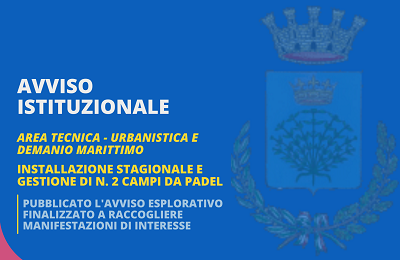 AVVISO PUBBLICO PER MANIFESTAZIONE DI INTERESSE PER L'AFFIDAMENTO IN CONCESSIONE AI SENSI DELL'ART. 45 BIS DEL CODICE DELLA NAVIGAZIONE DI PORZIONE DELL'ARENILE DENOMINATO S. FRANCESCO PER L'INSTALLAZIONE STAGIONALE E GESTIONE, DAL 1 MAGGIO AL 30 SETTEMBRE, DI N. 2 CAMPI DA PADEL