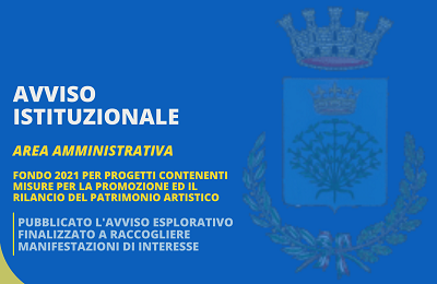 AVVISO PUBBLICO PER MANIFESTAZIONE DI INTERESSE INDIVIDUAZIONE DI UN'IDEA PROGETTUALE E DEI PARTNER PER LA PARTECIPAZIONE ALL'AVVISO PUBBLICO PER L'ASSEGNAZIONE DEL FONDO PER L'ANNO 2021 A SOSTEGNO DELLE PICCOLE E MEDIE CITTA' D'ARTE E DEI BORGHI PARTICOLARMENTE COLPITI DALLA DIMINUZIONE DEI FLUSSI TURISTICI DOVUTA ALL'EPIDEMIA DI COVID-19 PER PROGETTI CONTENENTI MISURE PER LA PROMOZIONE ED IL RILANCIO DEL PATRIMONIO ARTISTICO.