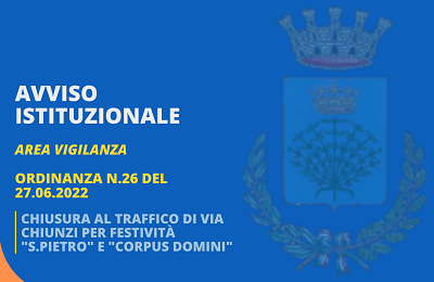 CHIUSURA AL TRAFFICO DI VIA CHIUNZI PER FESTIVITà€ S.PIETRO E CORPUS DOMINI