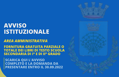 AVVISO LIBRI DI TESTO 2022 - 2023. FORNITURA GRATUITA PARZIALE O TOTALE DEI LIBRI DI TESTO PER GLI ALUNNI CHE FREQUENTANO LA SCUOLA SECONDARIA DI I E DI II GRADO