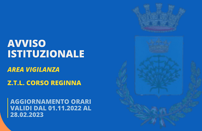 A partire dal 01.11.2022 e fino al 28.02.2023 l'orario di validità della Z.T.L. di Corso Reginna sarà dalle ore 09.30 alle ore 14.30.