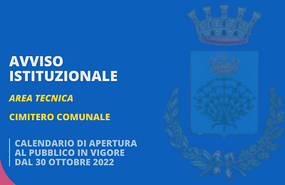 Di seguito viene pubblicato il calendario di apertura al pubblico della struttura cimiteriale in vigore dal 30 ottobre 2022.