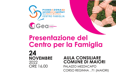 Il Centro per la famiglia e il Servizio di Assistenza Domiciliare Socio-educativa ai minori, affidato alla Gea Società Cooperativa Sociale interviene per rispondere ai bisogni dei cittadini residenti nei comuni della Costiera Amalfitana. Esso fornisce informazioni, ascolto, consulenza e servizi ed è rivolto a tutte le famiglie del territorio con figli da 0 ai 18 anni.