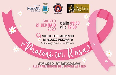 Sabato 21 gennaio, dalle 9:30 alle 12:30 MAIORI IN ROSA, giornata di sensibilizzazione sull'importanza della prevenzione del tumore al seno con screening mammario gratuito a cura del Dott. Luigi Cremone e del Dott. Cristiano Cremone.