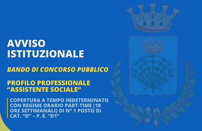 CONCORSO PUBBLICO PER ESAMI PER LA COPERTURA A TEMPO INDETERMINATO REGIME ORARIO PART-TIME AL 50% DI N. 1 POSTO DI CAT. D - P.P. ASSISTENTE SOCIALE. DIARIO PROVA SCRITTA. AVVISO.