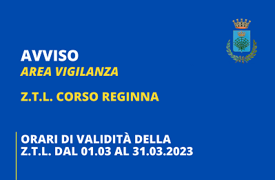 Si ricorda che l'orario di validità della ZTL dal 01/03 al 31/03 è il seguente: dalle ore 09.30 alle ore 14.30 e dalle ore 17.00 alle ore 20.30.