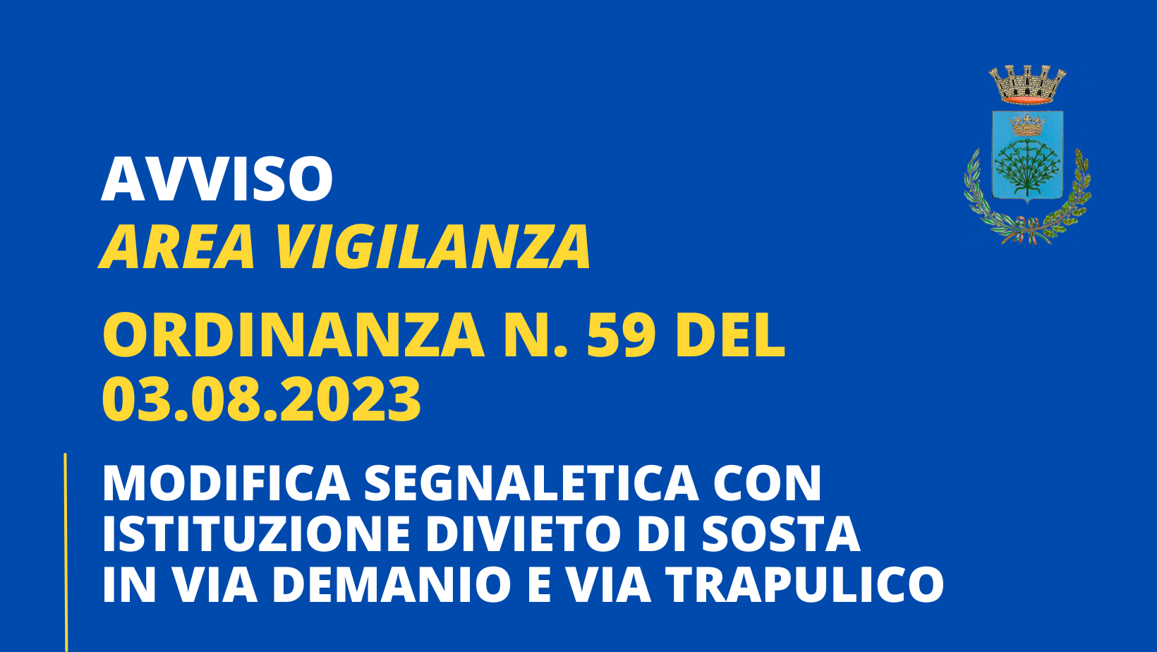- Il divieto di sosta 0-24 con rimozione in via Trapulico a partire dall'intersezione con via Vecchia Chiunzi e per tutta l'estensione entrambi i lati, con esclusione delle aree di sosta, riservata ai residenti muniti di apposito contrassegno, nei tratti consentiti secondo la segnaletica verticale apposta. La presente ordinanza avrà validità mediante l'installazione della segnaletica stradale verticale necessaria Consulta qui l'ordinanza completa