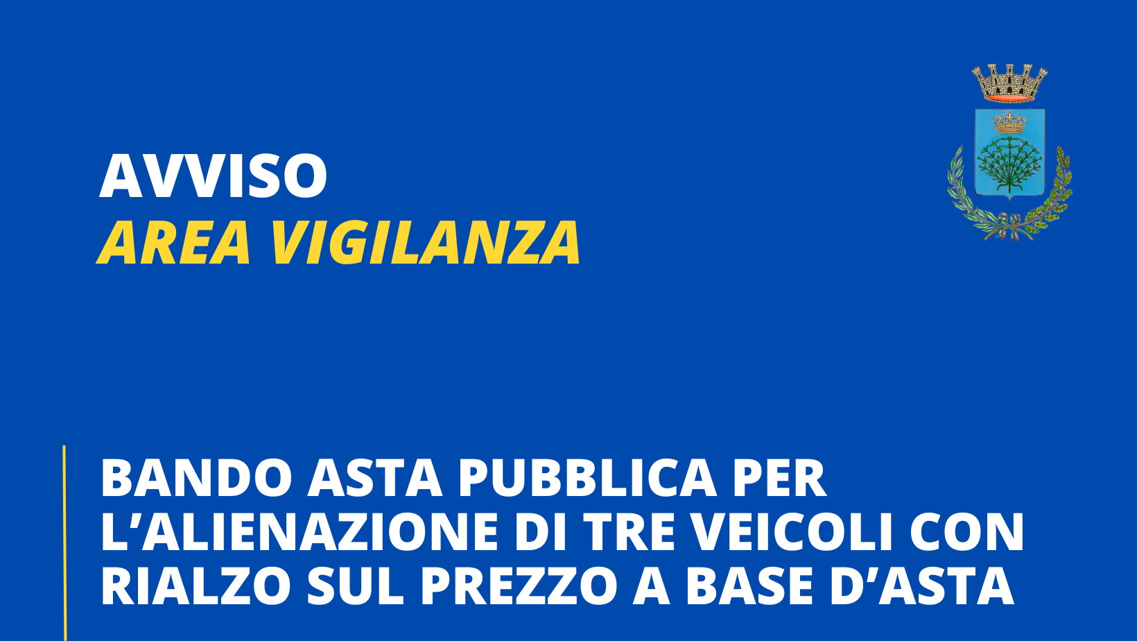 3. motociclo PIAGGIO LIBERTY, targato DB10116, con allestimento Polizia Municipale, anno di immatricolazione 2007. La procedura di alienazione sarà disciplinata secondo le seguenti modalità e condizioni: 1 Il presente avviso viene pubblicato sul sito istituzionale del Comune di Maiori www.comune.maiori.sa.it e sull'albo on-line, con termine ultimo della presentazione della domanda di ammissione alla procedura di alienazione e contestuale formulazione dell'offerta stabilito alle ore 12.00 del 28/08/2023; 2 Fino alla scadenza del termine per la presentazione delle offerte, gli interessati, previo appuntamento da concordare con il personale del Comando di Polizia Municipale, potranno visionare, in modo da poterne verificare le condizioni; 3 Sono ammesse alla presentazione di offerte persone fisiche e giuridiche; non possono essere compratori i soggetti di cui all'art.1471, comma 1 e 2 del codice civile, nonché i dipendenti del Comune di Maiori coinvolti nella procedura di alienazione, nella stima dei beni o che comunque abbino potere decisorio in merito; 4 Non è ammessa, per motivi inerenti alla trasparenza, l'offerta per interposta persona o per persona da nominare; 5 Il criterio per l'individuazione del contraente sarà esclusivamente quello dell'offerta economica più elevata riferita a ciascun veicolo, con esclusione automatica di eventuali offerte inferiori rispetto all'importo minimo determinato; 6 In caso di più offerte di pari importo verrà data priorità a quella pervenuta prima all'ufficio Protocollo e nell'eventualità che vi sia corrispondenza anche nella data di ricevimento dei plichi, si procederà mediante sorteggio; 7 L'offerta economica sarà formulata dagli interessati con la sottoscrizione che la stessa sia basata su adeguate conoscenza dello stato della carrozzeria, e del meccanismo idraulico, meccanico e di rispondenza o meno alle funzioni; 8 Qualsiasi onere e costo per il ritiro e trasporto dei veicoli aggiudicati, nonché tutte le spese per il passaggio di proprietà e l'aggiornamento dei documenti di circolazione saranno a carico dell'aggiudicatario; 9 L'aggiudicatario dovrà rimuovere tutti i loghi, e le scritte ed i segni identificativi dell'Ente dalla carrozzeria dei veicoli; 10 Le offerte dovranno essere formulate esclusivamente compilando il modulo di domanda di ammissione, il modulo di offerta economica e proposta irrevocabile di acquisto, predisposto da questo ufficio, e dovranno pervenire in busta chiusa e sigillata all'ufficio Protocollo del Comune di Maiori (SA) Corso Reginna, 71, entro e non oltre il termine perentorio stabilito dal presente avviso pubblico, allegando copia fotostatica del documento di riconoscimento del sottoscrittore in corso di validità ; 11 I plichi contenenti l'offerta dovranno essere recapitati a mezzo raccomandata del Servizio Postale o tramite Agenzia di recapito autorizzata, ovvero mediante consegna a meno presso l'Ufficio Protocollo Comunale, durante l'orario ordinario di apertura al pubblico (dal lunedì al venerdì dalle ore 09:00 alle ore 12:00 inoltre il martedì ed il giovedì dalle ore 15:00 alle ore 17:00), che rilascerà apposita ricevuta; 12 I plichi devono essere no trasparenti (in modo che non sia conoscibile il contenuto), devono essere chiusi e sigillati con ceralacca o nastro adesivo e/o con altre modalità idonea a garantirne la sicurezza contro eventuali manomissioni, devono essere controfirmati sui lembi di chiusura e devono recare all'esterno, oltre al nominativo/intestazione ed all'indirizzo del mittente, le indicazioni relative al destinatario, all'oggetto della procedura ed al giorno di scadenza del termine di presentazione dell'offerta, riportando la dicitura OFFERTA PER L'ASTA PUBBLICA ALIENAZIONE LOTTO N.1 13 Il recapito dei plichi rimane ad esclusivo rischio dei mittenti, restando escluse, in quanto irricevibili, le domande pervenute dopo il termine ultimo fissato, a tal fine farà fede esclusivamente il timbro dell'ufficio Protocollo del Comune; 14 Non sarà ammessa alcuna offerta aggiudicativa e/o sostitutiva della precedente e non sarà consentita la presentazione di successive integrazioni documentali, fatto quanto previsto dalla legge in materia di soccorso istruttorio; 15 Tutta la documentazione da produrre deve essere in lingua italiana e se redatta in lingua straniera, deve essere corredata da traduzione giurata poiché in caso di incongruenza tra i due testi prevarrà la versione in lingua italiana, essendo a rischio del concorrente assicurare la fedeltà della traduzione; 16 L'apertura delle buste contenenti le offerte regolarmente pervenute entro il termine di cui al precedente punto 1) sarà effettuata dal Responsabile del procedimento, previa verifica dell'integrità e chiusura dei plichi, in seduta pubblica presso la sede Comunale - Comando Polizia Locale alle ore 12.00, del giorno 29/08/2023, redigendo verbale delle operazioni svolte; eventuali variazioni delle data saranno tempestivamente rese note mediante pubblicazione di avviso sul sito ufficiale del Comune; 17 La gara sarà ritenuta valida ed il Comune potrà procedere alla relativa aggiudicazione anche in presenza di una sola offerta valida; 18 L'esito della gara sarà pubblicato sul profilo del sito ufficiale del Comune; 19 Verificate le offerte valide pervenute e redatta la relativa graduatoria, il miglior offerente per ciascun veicolo sarà avvisato dell'aggiudicazione tramite indirizzo di posta elettronica indicato nell'istanza o in mancanza telefonicamente Maiori 12/08/2023 IL RESPONSABILE DEL PROCEDIMENTO