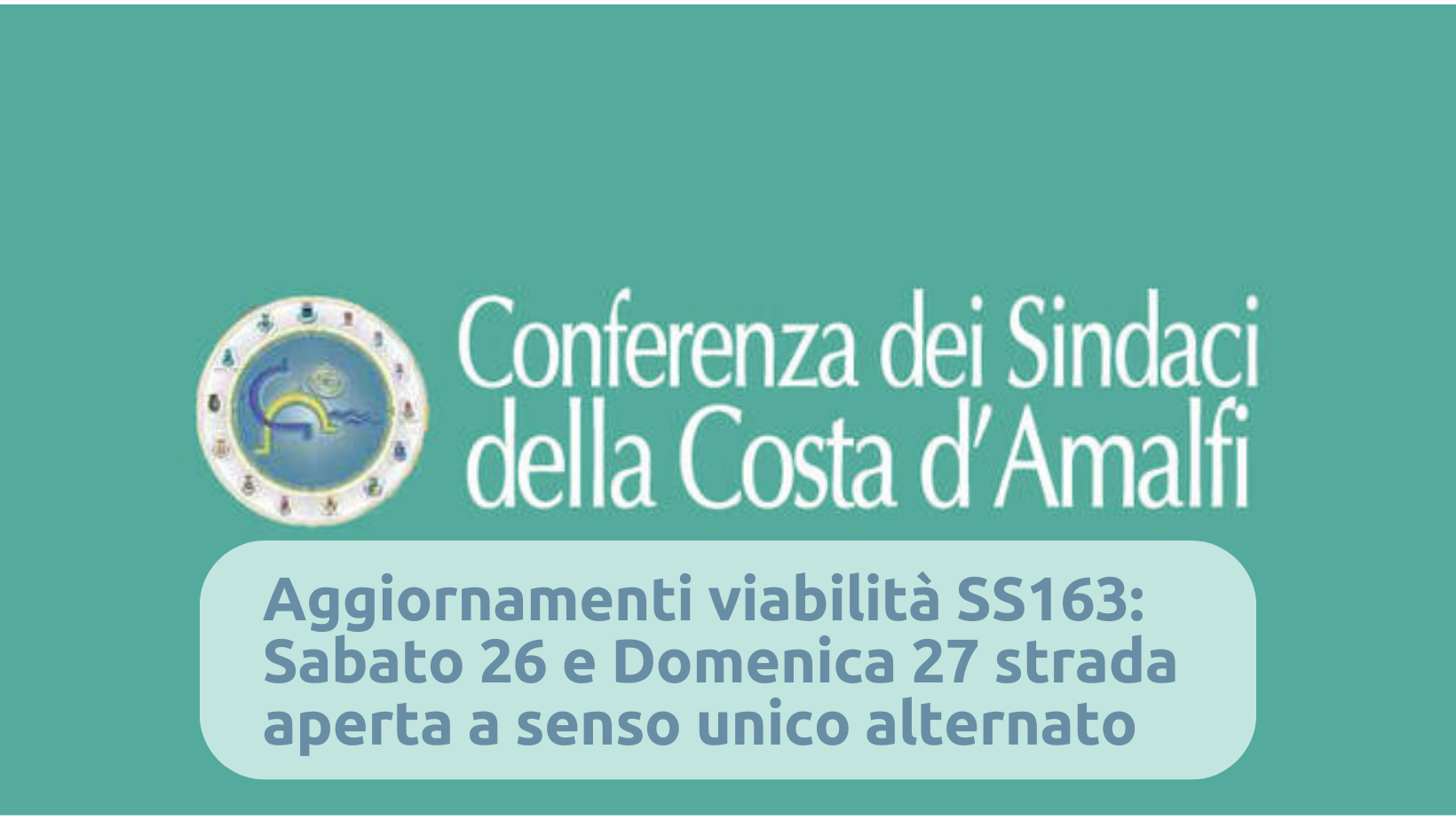 Aggiornamenti viabilità SS163: Sabato 26 e Domenica 27 Agosto strada aperta a senso unico alternato