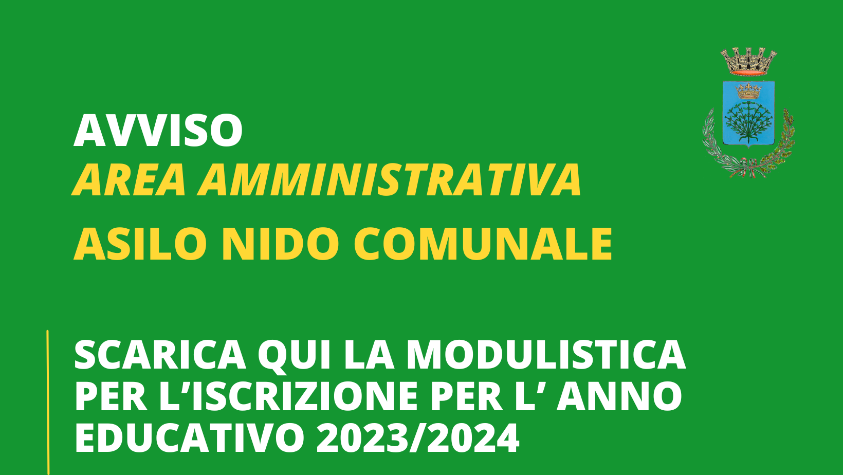 SI RENDE NOTO che, in esecuzione della deliberazione di Giunta Comunale n° 171 del 25.09.2023 è possibile presentare domanda per l'iscrizione ai servizi socio - educativi per la Prima Infanzia del Comune di Maiori per l'anno educativo 2023/2024 (novembre 2023 - luglio 2024) presso l'Asilo Nido ubicato sul territorio di Maiori.
