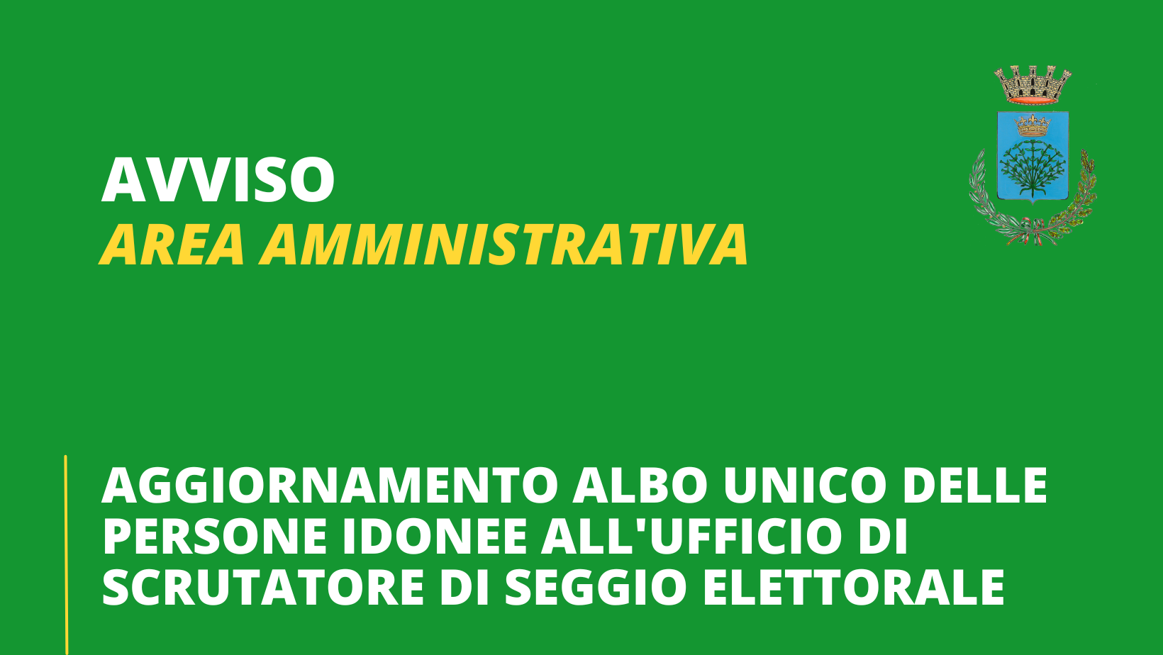 Visti gli artt. 1 e 3 della legge 8 MARZO 1989, N. 95, e successive modificazioni, che prevede l'affissione di apposito manifesto per invitare chi lo desidera, a fare domanda di inserimento nell'albo unico comunale degli scrutatori di seggio elettorale; Visto che nel detto albo, possono essere inseriti, a domanda, tutti gli elettori in possesso dei requisiti previsti dalla richiamata legge n. 95/1989