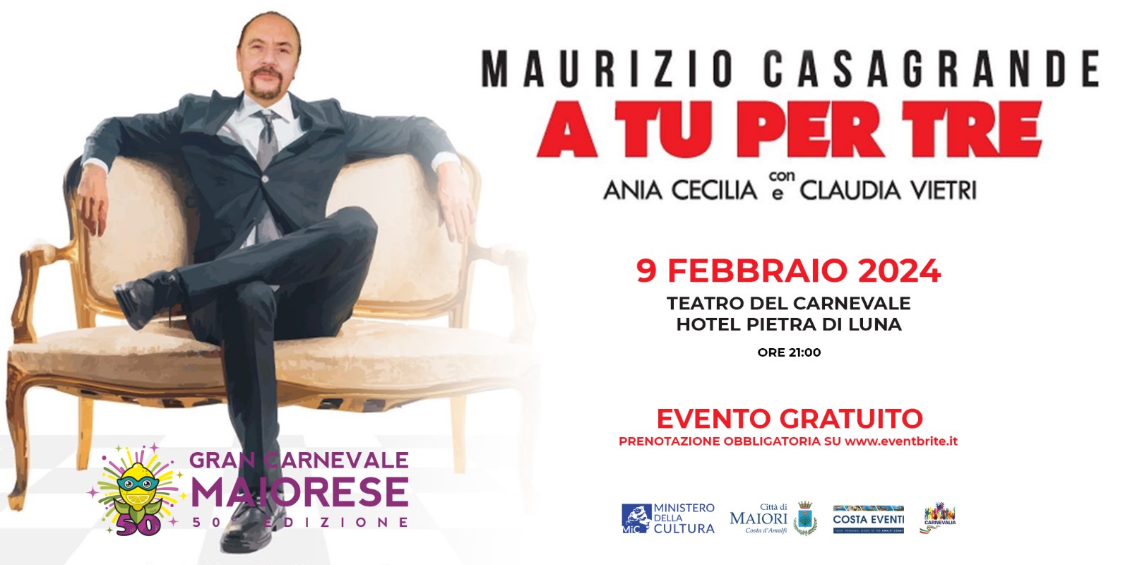 #gcm2024 - Maurizio Casagrande In A TU PER TRE - Teatro del Carnevale presso Hotel Pietra di Luna Venerdì 9 Febbraio ore 21