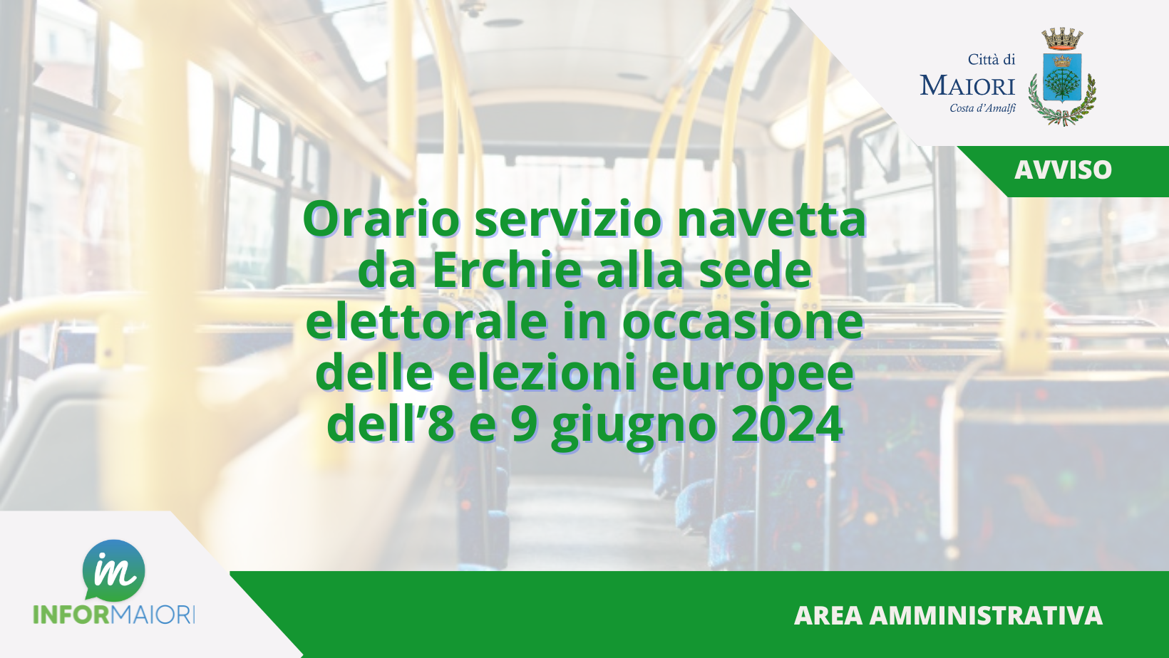 Orario servizio navetta da Erchie alla sede elettorale in occasione delle elezioni europee dell'8 e 9 giugno 2024