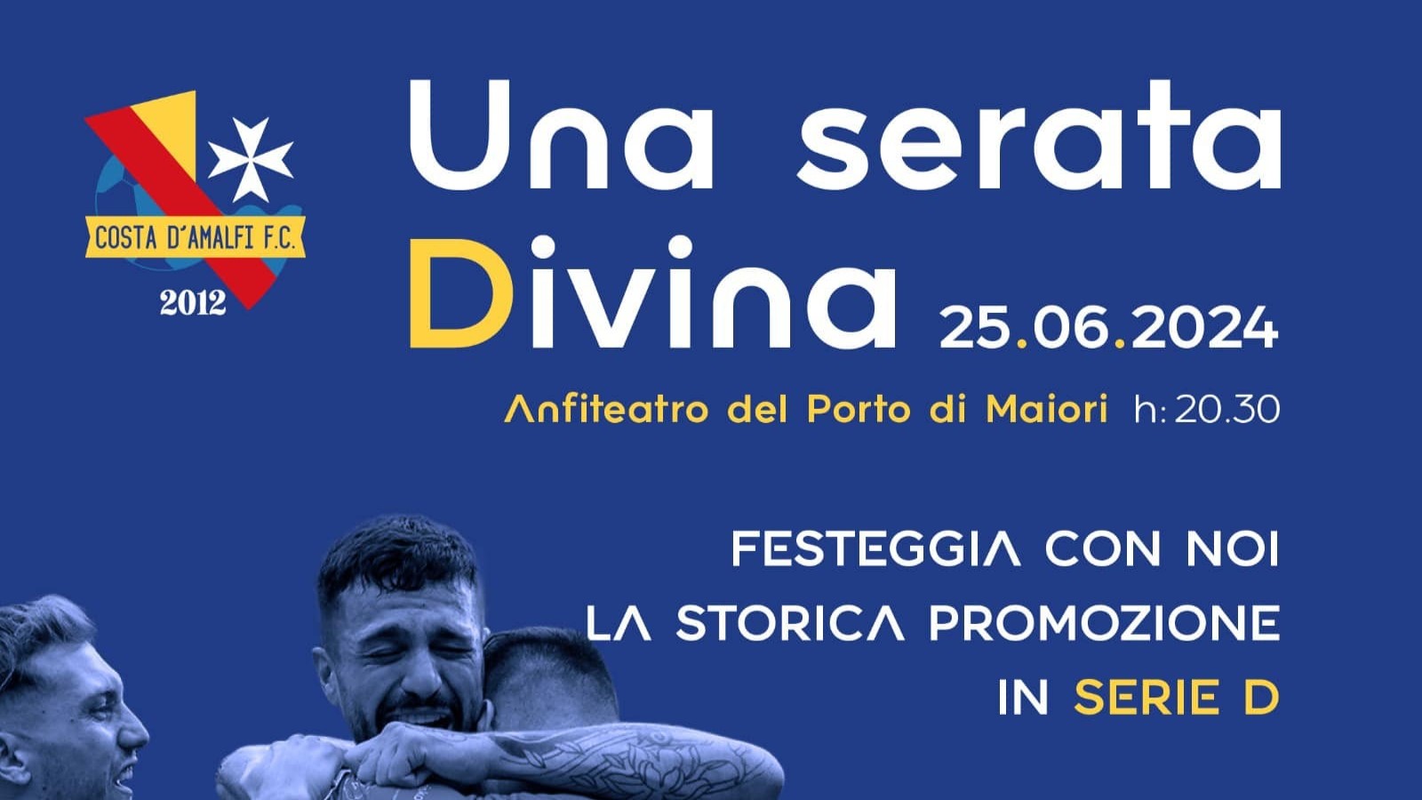 Festa promozione in serie D dell'F.c. Costa d'Amalfi - Martedì 25 giugno p.v. ore 20 Anfiteatro del Porto di Maiori