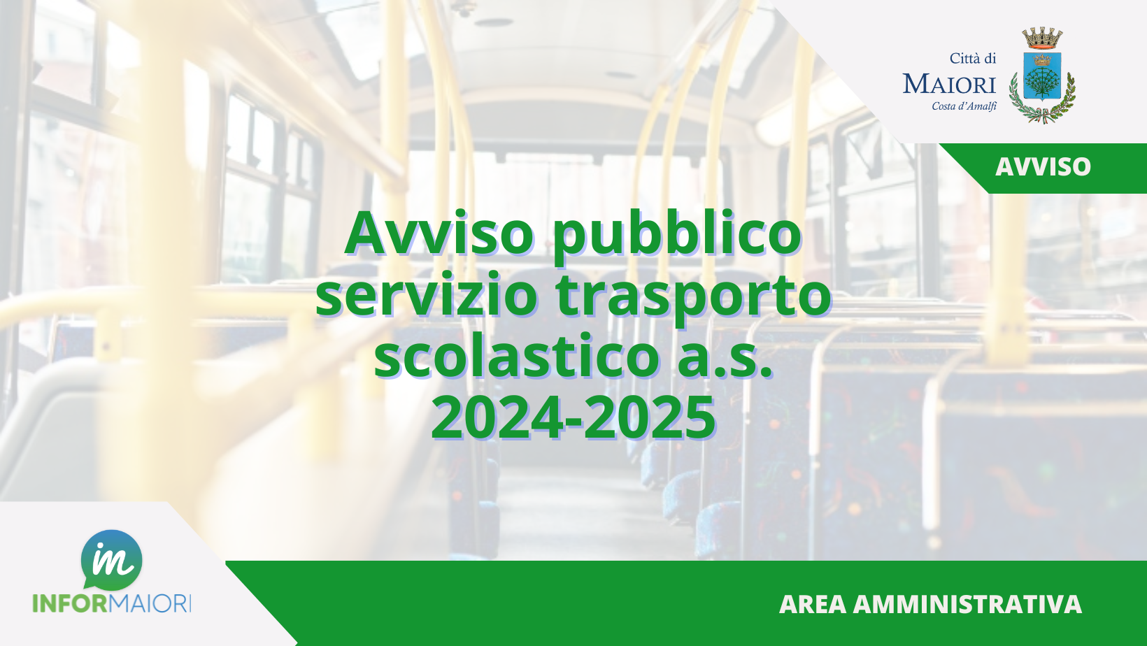 Sono aperte le iscrizioni per usufruire del servizio di trasporto scolastico per l 'a. s. 2024/2025 per gli alunni frequentanti la Scuola dell'Infanzia, Primaria e Secondaria di Primo grado, residenti nel Comune di Maiori.