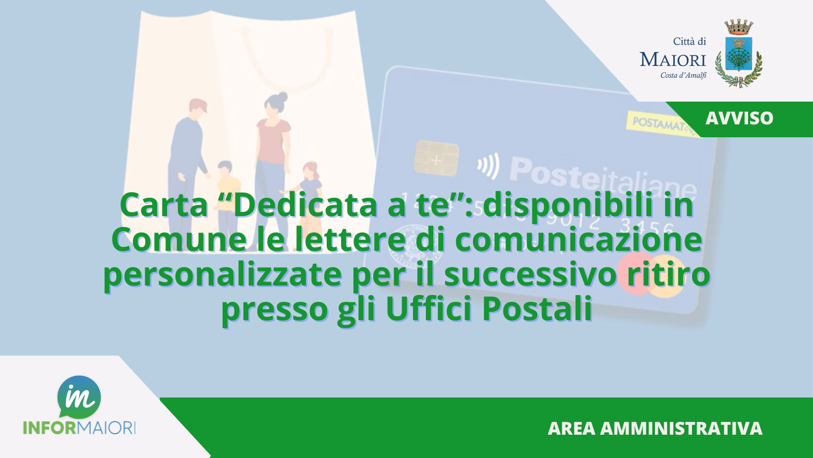 Carta Dedicata a te: disponibili in Comune le lettere di comunicazione personalizzate per il successivo ritiro presso gli Uffici Postali.