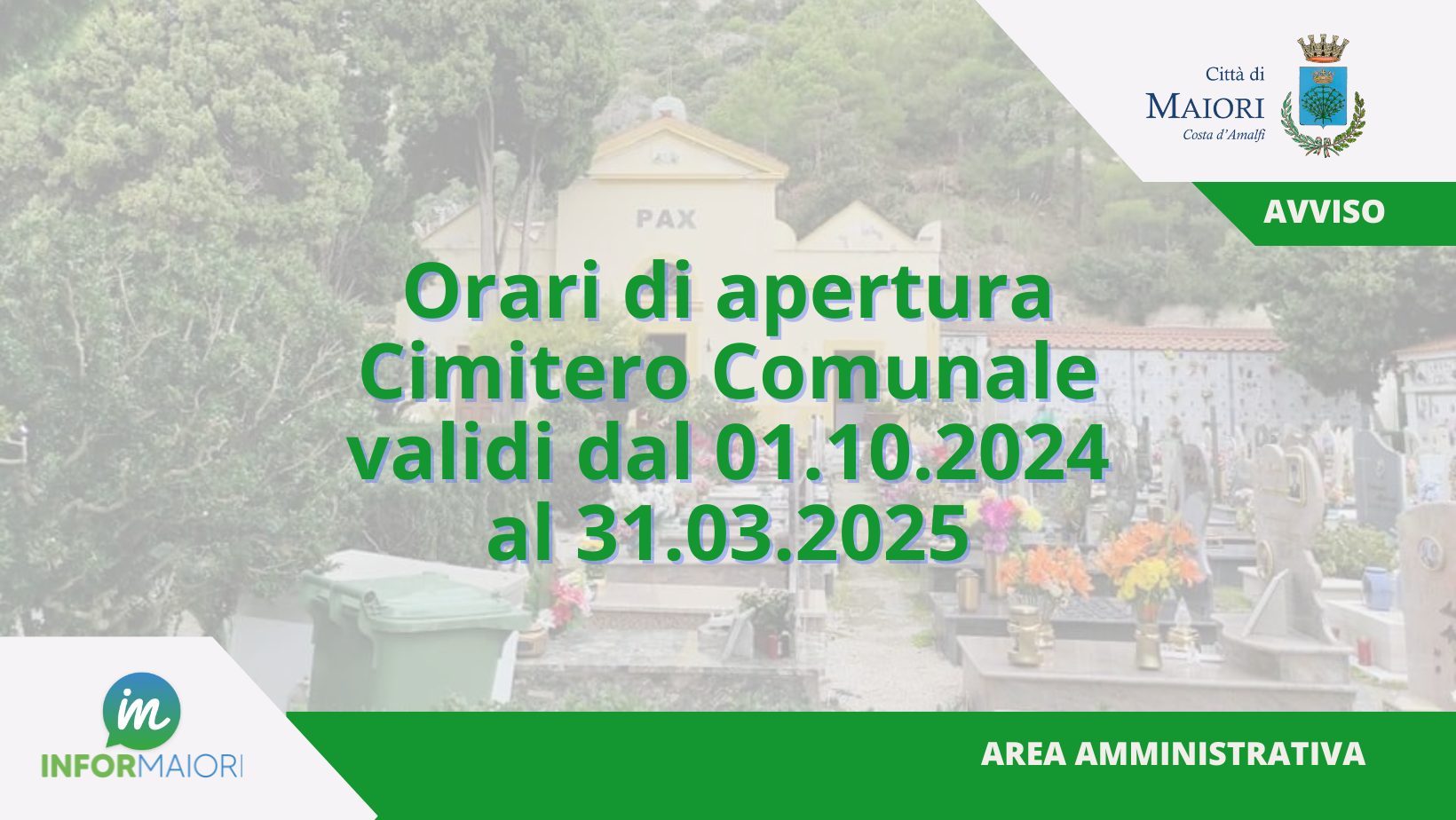 Orari di apertura Cimitero Comunale validi dal 01.10.2024 al 31.03.2025