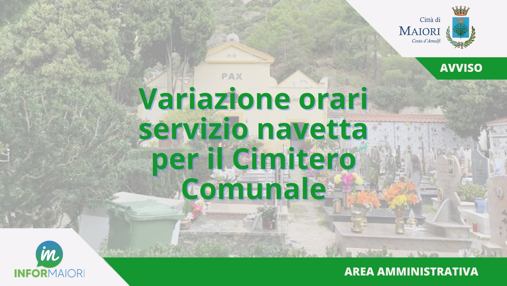Si comunica alla cittadinanza che, a partire da venerdÌ 11 ottobre p.v., il servizio navetta per il Cimitero Cittadino partirà da Corso Reginna alle ore 14,00 e alle ore 14,30.
