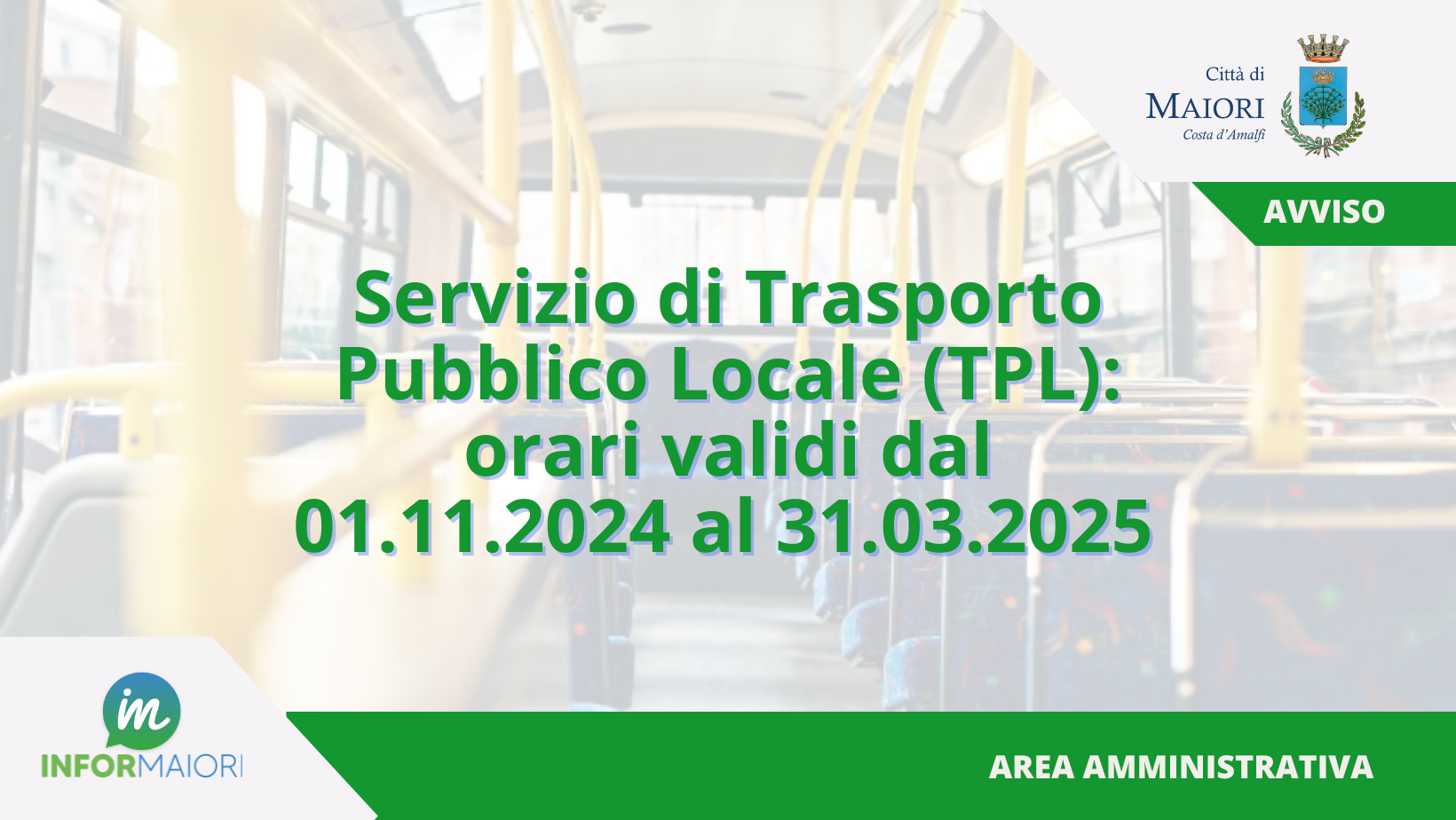 Servizio di Trasporto Pubblico Locale (TPL): orari validi dal 01.11.2024 al 31.03.2025