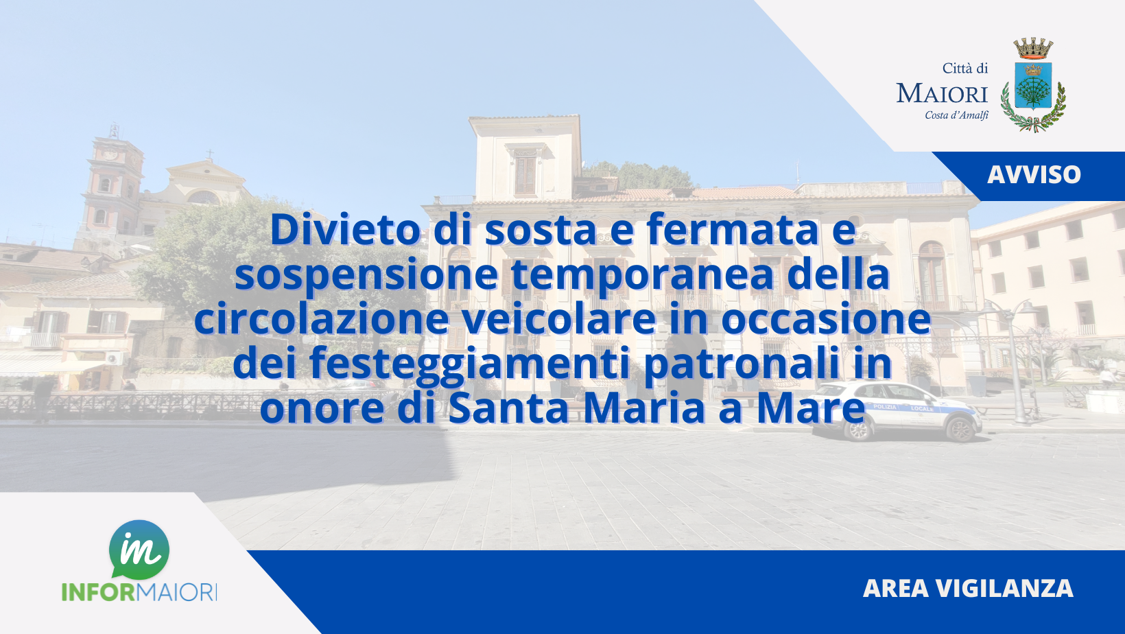 Si istituisce altresÌ la sospensione temporanea della circolazione veicolare, limitata al passaggio della processione, nelle stesse strade. Resta sempre aggiornato: iscriviti ad InfoMaiori