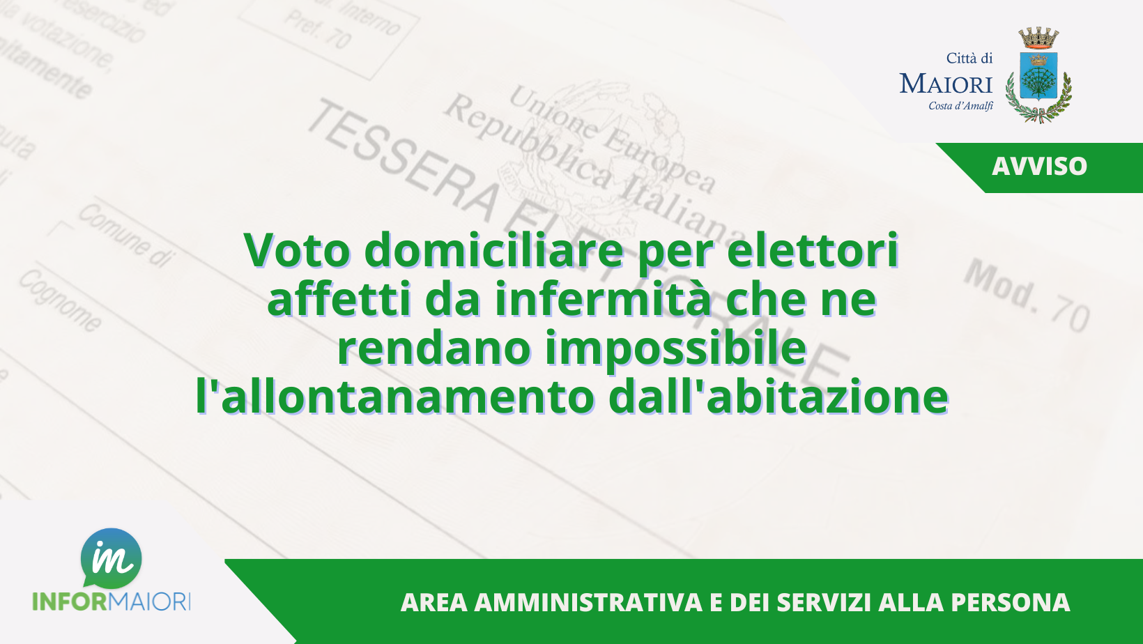 Avviso voto domiciliare per elettori affetti da infermitą che ne rendano impossibile l'allontanamento dall'abitazione