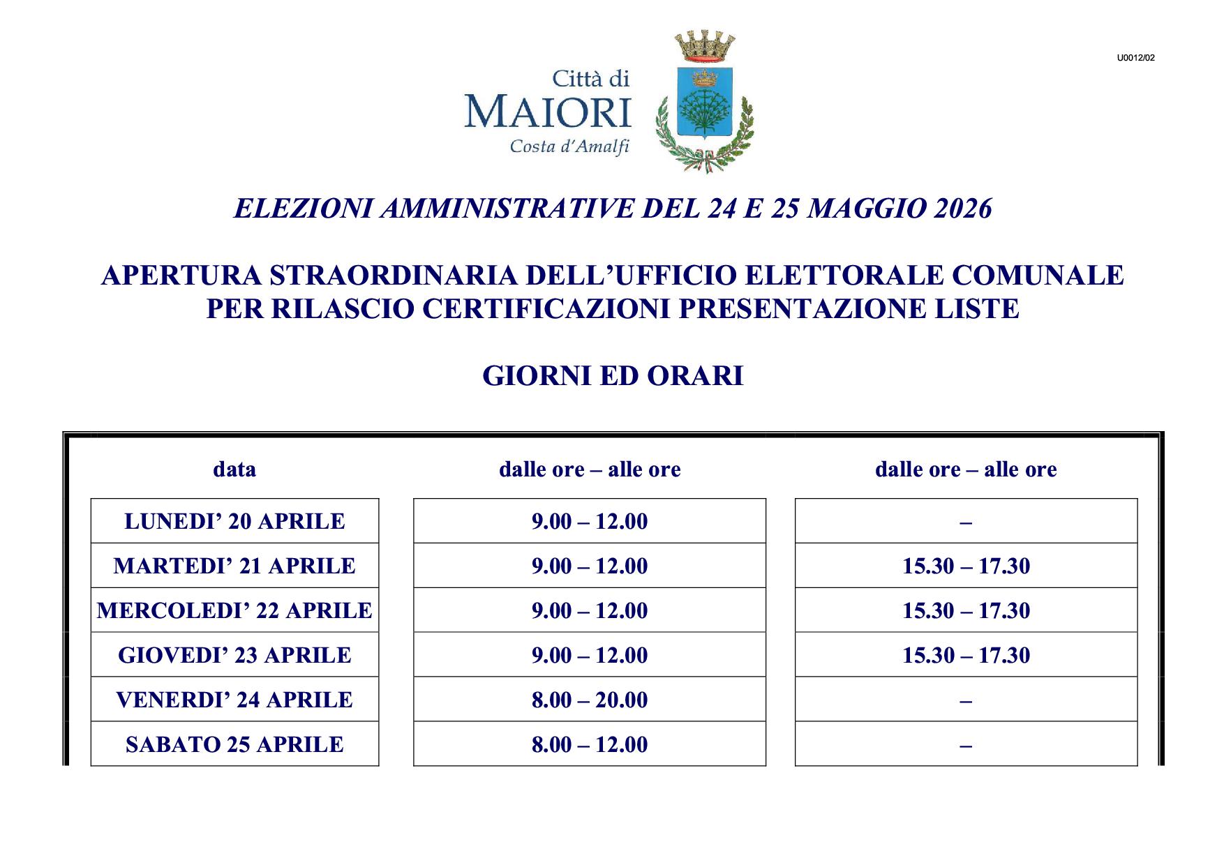 A cura di Area Amministrativa e dei Servizi alla Persona Corso Reginna 71, Maiori(SA), 84010 Telefono: +39 089814201Email: r.sammarco@comune.maiori.sa.it